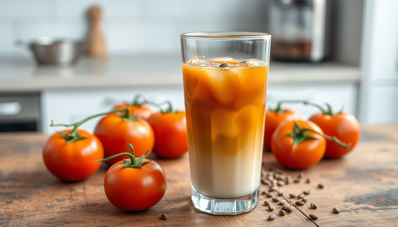 A unique flash-chilled coffee featuring bright Tanzanian peaberry beans, savory tomato water, and aromatic fennel syrup. This innovative brew combines coffee's natural acidity with umami notes and subtle licorice sweetness for an unexpectedly refreshing drink that's perfect for adventurous coffee lovers.