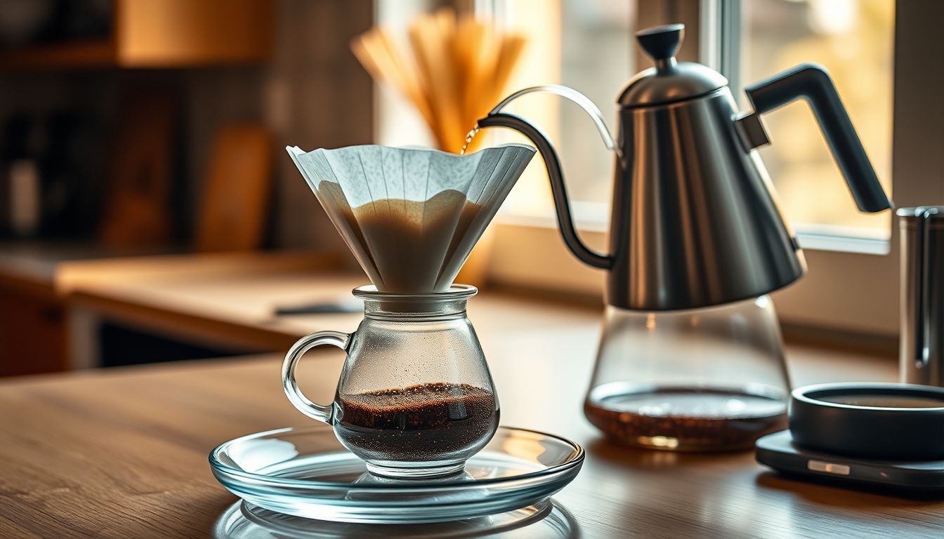 Master the elegant Chemex brewing method for clean, bright coffee. Learn the proper fold technique and pouring pattern.