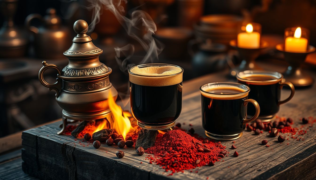 An ancient Anatolian coffee ritual combining finely ground dark roast with wild juniper berries and tangy sumac. This mystical brew creates a complex, earthy nectar that connects you to centuries-old mountain traditions. The juniper adds pine-like aromatics while sumac provides a subtle tartness that balances the coffee's intensity.