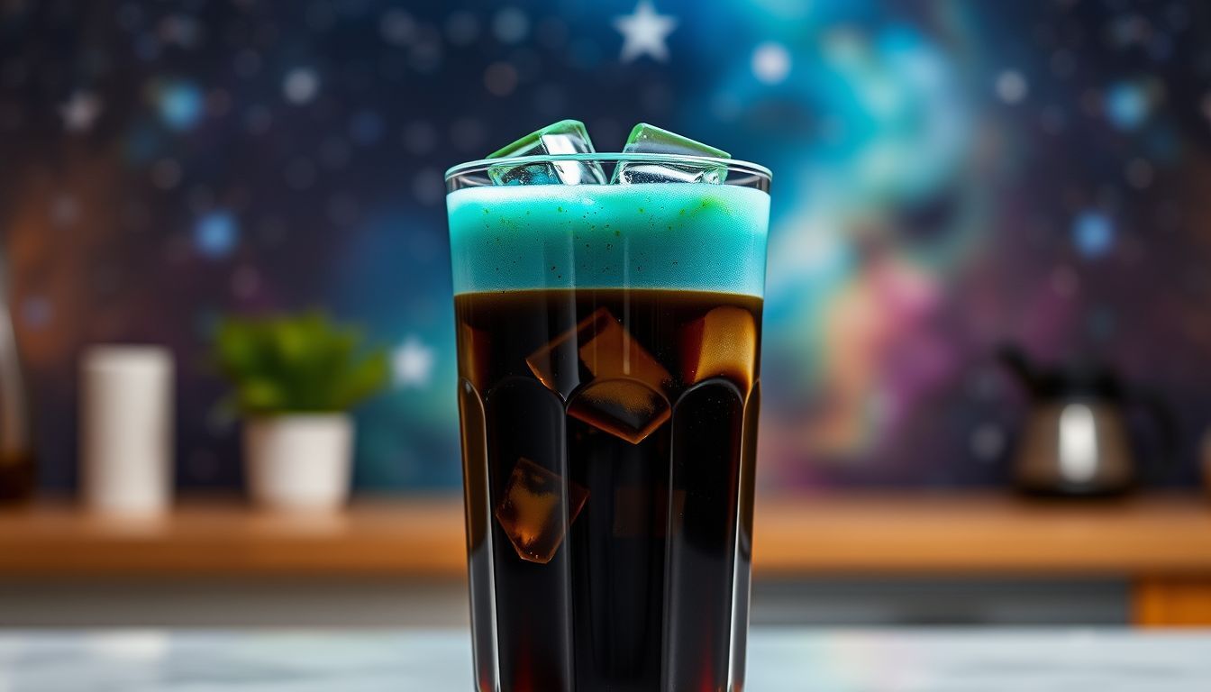 A stunning layered cold brew featuring rich coffee topped with vibrant blue spirulina-matcha foam. This visually striking drink combines earthy coffee with the subtle sweetness of matcha and the oceanic hue of spirulina for an out-of-this-world experience that's surprisingly simple to make at home.