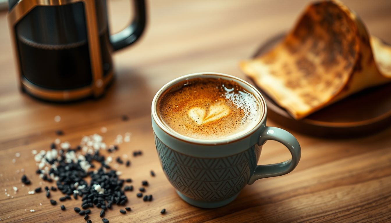 A luxurious coffee inspired by traditional Yemeni brewing, featuring rich chocolate notes enhanced with warm spices like cardamom and cinnamon. This comforting drink combines the bold flavors of dark roast coffee with golden turmeric and a touch of honey, creating a warming beverage perfect for cool mornings or afternoon treats.