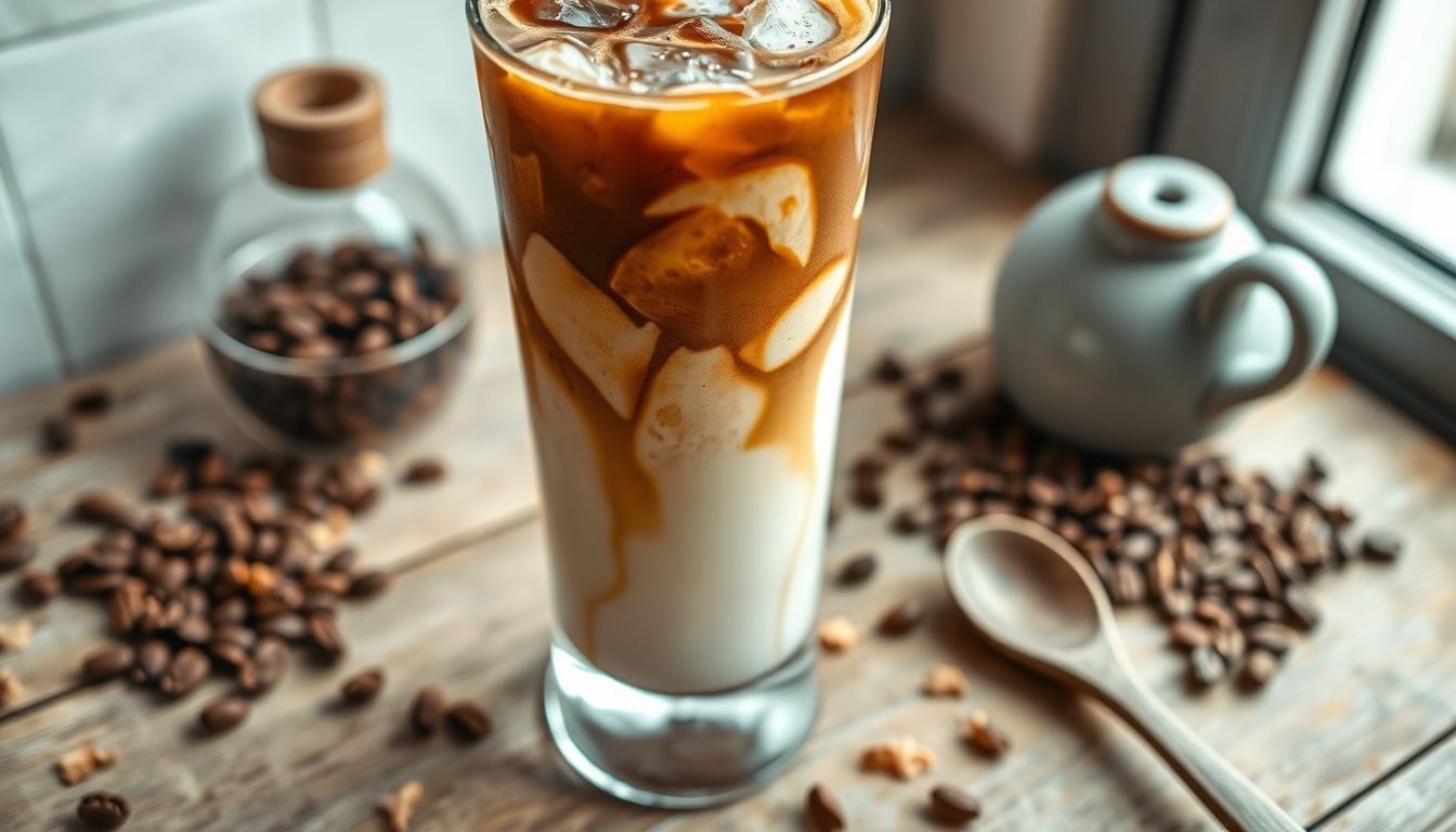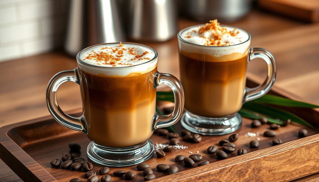 A tropical twist on your morning brew featuring rich French press coffee enhanced with creamy coconut milk, warming spices, and a touch of sweetness. This festive drink brings vacation vibes to your kitchen with its aromatic blend of cinnamon, cardamom, and vanilla that perfectly complements the coconut's natural richness.